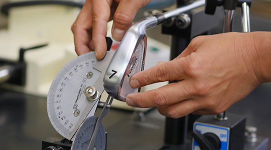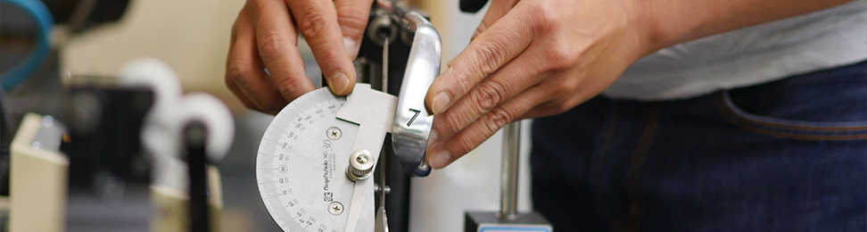 ウッドは接着段階でロフト・ライ角・フェースアングル等の調整をシャフト差込方向で調整し、アイアンはネックを曲げ調整いたします。