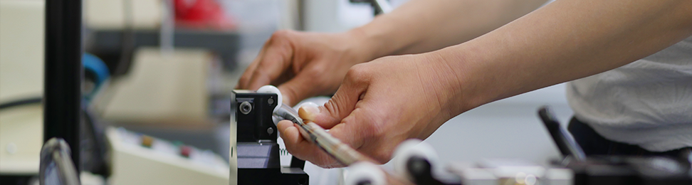 はみ出した余分なフェルールを研磨機にて平らに削ります。