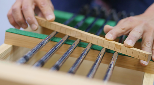 この柔らかい部分と硬い部分の測定を行い、それぞれの位置関係を把握したうえでシャフトを装着することによって、全番手シャフトのしなり・もどりを統一してまいります。